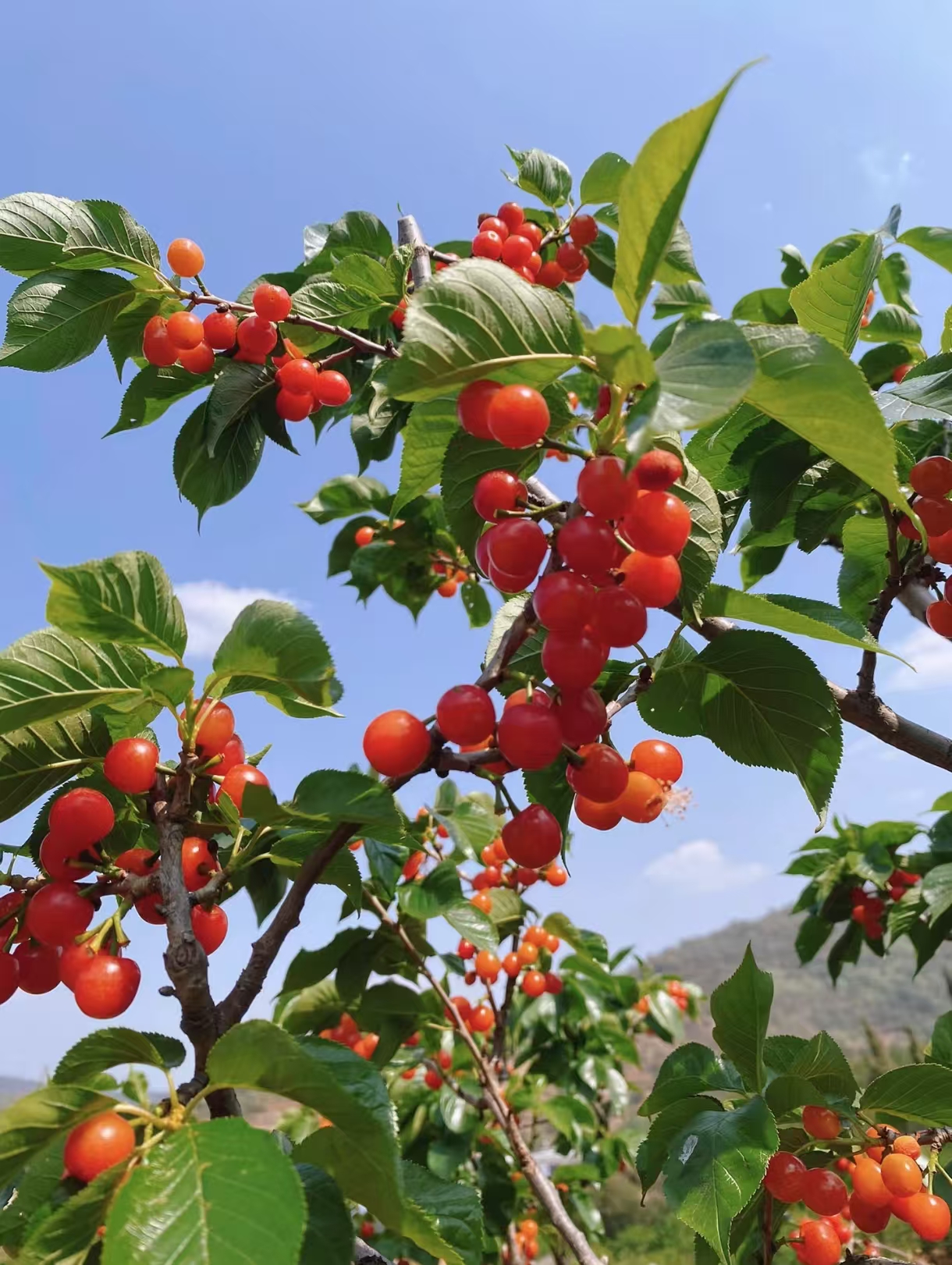 走進(jìn)櫻桃園,紅潤(rùn)飽滿(mǎn)的果實(shí)綴滿(mǎn)枝頭,猶如點(diǎn)點(diǎn)繁星。大家三兩結(jié)伴,一邊采摘品嘗,一邊拍照留念,果園中洋溢著輕松愉快的氛圍。